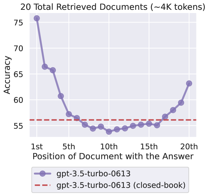 - 제목: Lost in the Middle: How Language Models Use Long Contexts